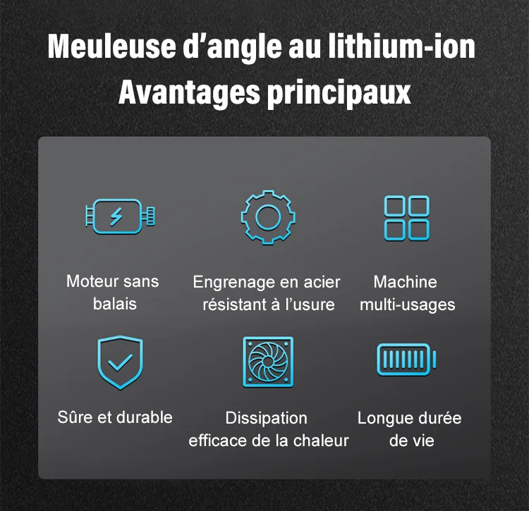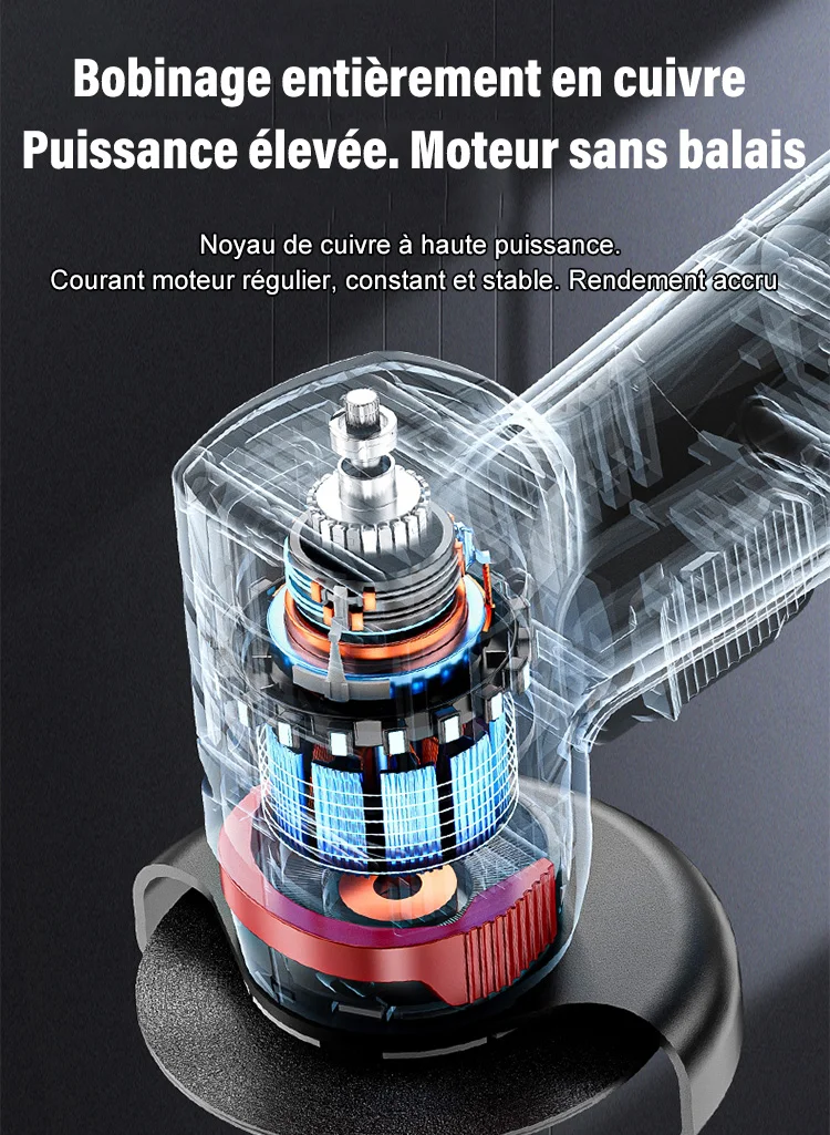 Le moteur sans charbons, la ventilation par des flux d’air optimisés, et une protection électronique des cellules Lithium-Ion et du moteur, lui garantissent une durée de vie importante.