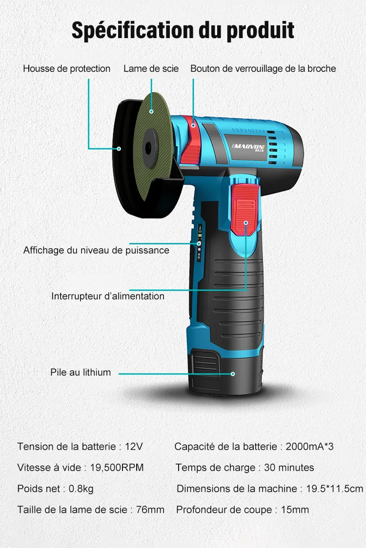 Polyvalente, cette meuleuse sans fil permet le tronçonnage du métal (acier, aluminium, cuivre, inox), du bois (dur et tendre), et du plastique (PVC, composite, plexiglas) avec un disque jusqu’à 76 mm de diamètre.