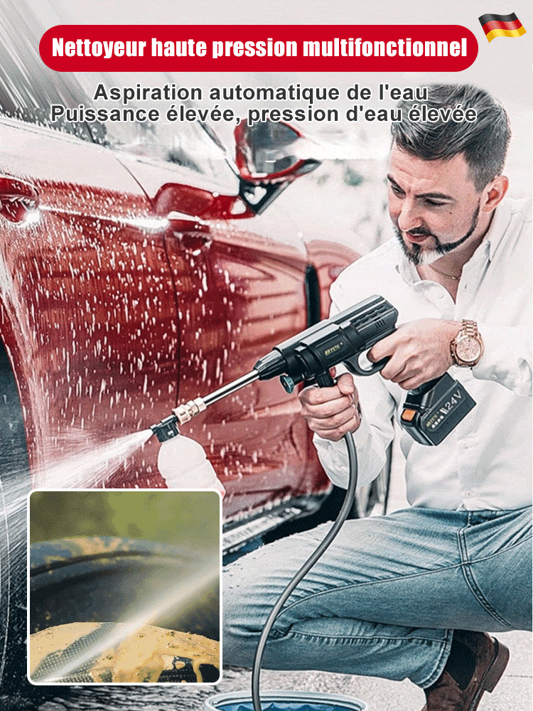 Pistolet À Eau Portable Pour Lavage De Voiture+2 Batterie 24V